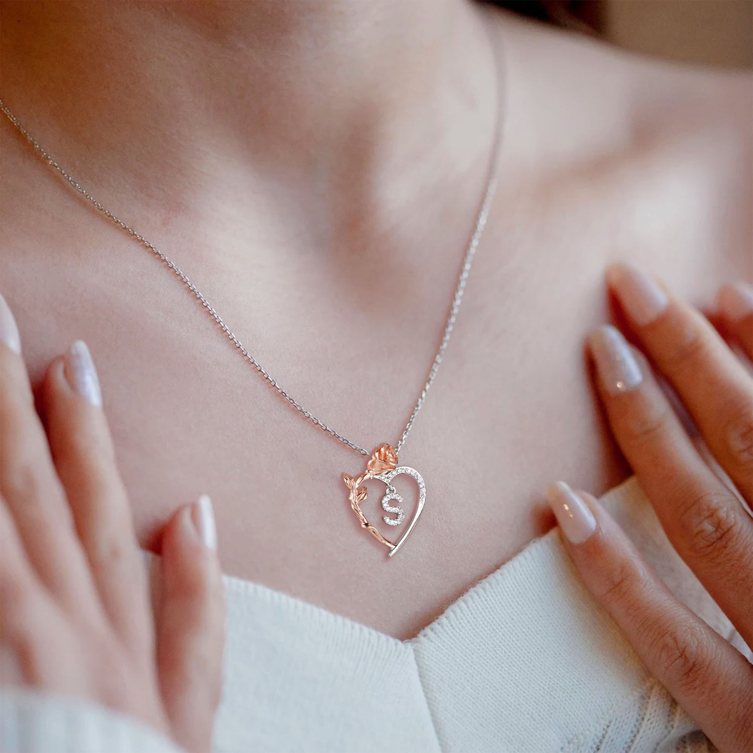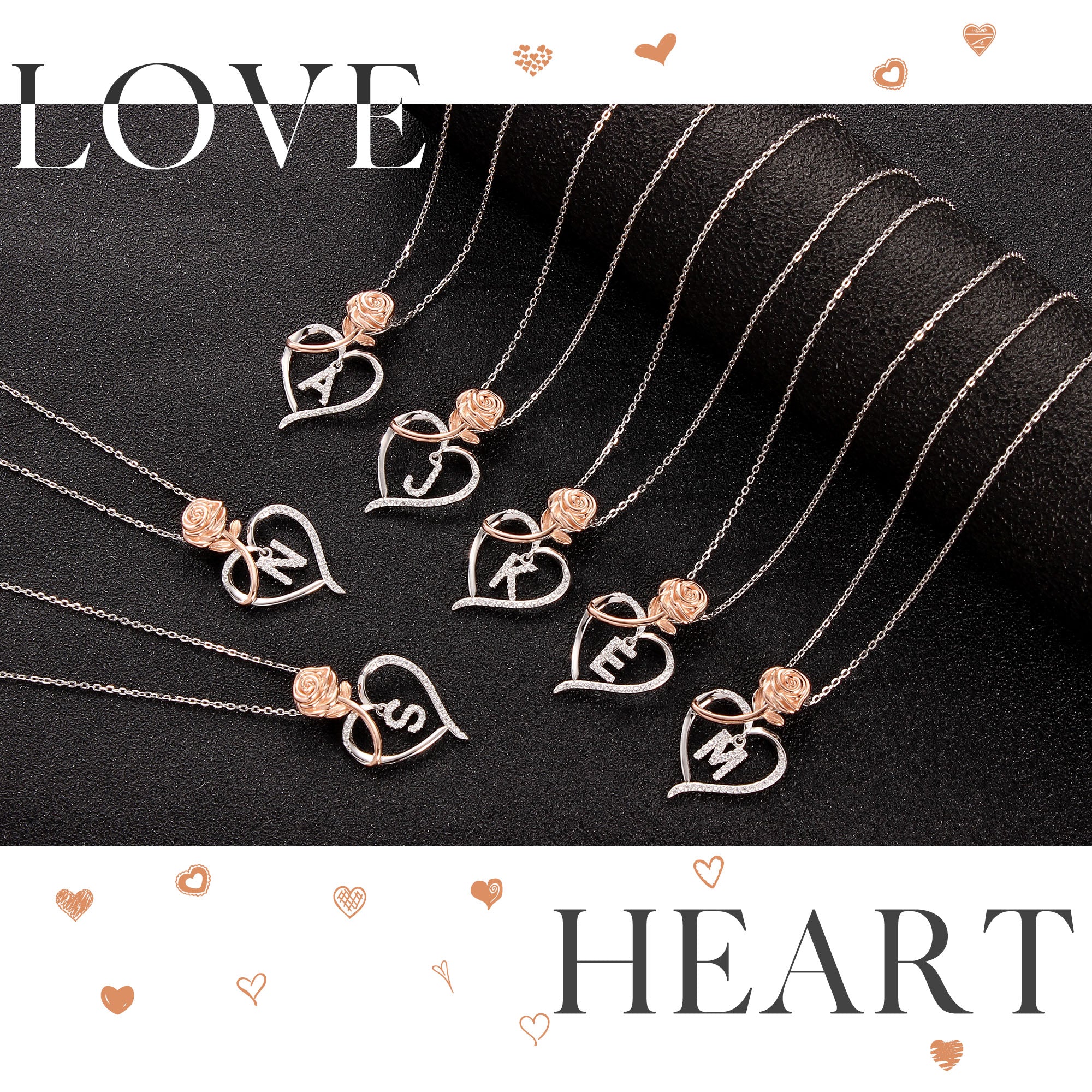 Rose Heart Necklaces Gifts for Women Heart Initial Letter Pendant Necklaces