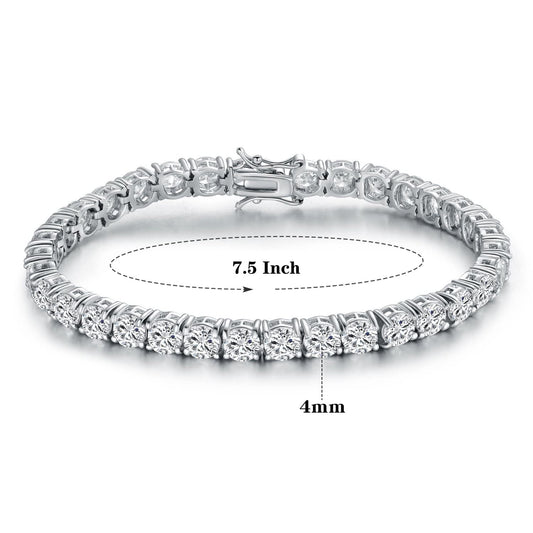 JSJOY 925 Sterling Silver Bracelet 18K White Gold Plated 4.0 Round Cubic Zirconia Classic Tennis Bracelet 6.0-8.5 Inch