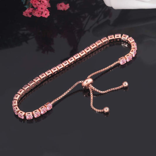 JSJOY 14k Gold or Sterling Silver Plated Cubic Zirconia Adjustable Tennis Bracelet 9.5" Holiday commemorative gifts