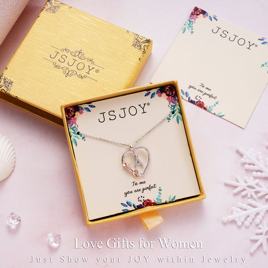 JSJOY Rose Heart Necklaces Gifts for Women Heart Initial Letter Pendant Necklaces Jewelry Anniversary Valentines Day Gifts for Her Mothers Day Birthday Gifts for Women Girls