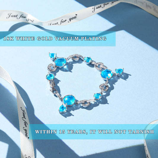 JSJOY 925 tennis bracelet Sterling Silver Alternating AAA Cubic Zirconia Blue gemstone Tennis Bracelet Holiday gifts for family and lovers,7.5"