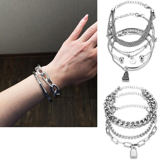 JSJOY 18-25 Pcs (6 Pack) 14K Gold Silver Bracelets Set for Women Girls Boho Stackable Y2K Chain Layered Multipack Bangles Adjustable Layering Cuff Italian Cuban Anklet Charm Chunky Bracelet Bundle Jewelry