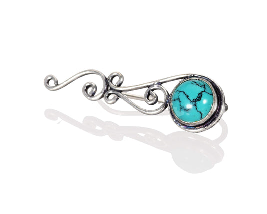 Turquoise Ear Climbers Silver Crawlers Earrings Pair of Celtic Knots Ear Crawlers Light Blue Sweep Bohemian Ethnic Tribal Jewelry for Women Turquoise Ear Crawlers