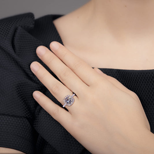 JSJOY Fashion Moissanite Halo Ring for Women, S925 Sterling Silver 18K White Gold Plated Engagement Ring 1.3CT D Color VVS1 Clarity Round Cut Solitaire Rings, Wedding Bands Promise Lab Diamond Rings for HerMoissanite Halo Ring for Women