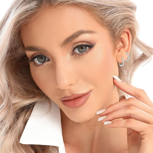 G23 Pure Titanium Pairs Small Huggie Hoop Earrings Hypoallergenic Lightweight Cartilage Hoops Small Cubic Zirconia Cuff Earrings Mini Piercing Jewelry for Women Girls Teen Holiday commemorative gifts