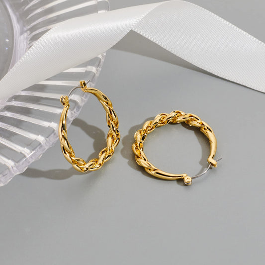 JSJOY Twisted Hoop Earrings for Women 14K Gold Plated Twisted Square Hoop Earrings Simple Big Chunky Hoop Earrings Minimalist Geometry Earrings Jewelry Gifts