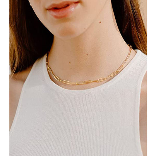 JSJOY 14K Gold Plated Paperclip Chain Necklace Simple Hexagon Letter Pendant Initial Choker Necklace Gold Layered Necklaces for Women Mother's Day Layered Initial Necklaces Gift for Mom
