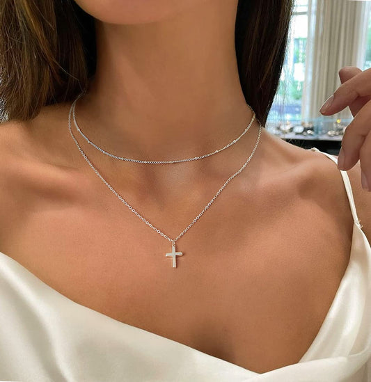 JSJOY Cross Necklace for Women, 14K Gold Plated/Sterling silver Chain Necklace Dainty Layered Gold Cross Pendant Necklace Simple Cute Necklaces for Women Gold Jewelry for Women