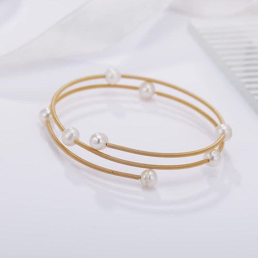 Freshwater Cultured Pearl Bracelet for Women Fashion pearl Pearl Stretch Bracelet Pearl Cuff Bangle Pearl Sliding Bolo Bracelet