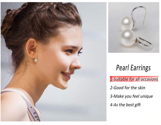 Pearl Earrings for Women 925 Sterling Silver Dangle Drop Pearl Earrings Jewelry 8mm Pearl Drop Earrings for Women Girls Gift
