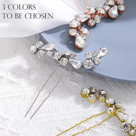 JSJOY Bride Wedding Hair Pins Silver Crystal Bridal Hair Pieces Rhinestone Hair Accessories for Women and Girls (pack of 2)