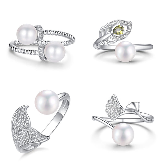 Pearl Ring Sterling Silver Rings for Women 925 Adjustable with Cubic Zirconia Open June Birthstone Rings for Teen Girls with Real Round Genuine Freshwater Cultured Stackable