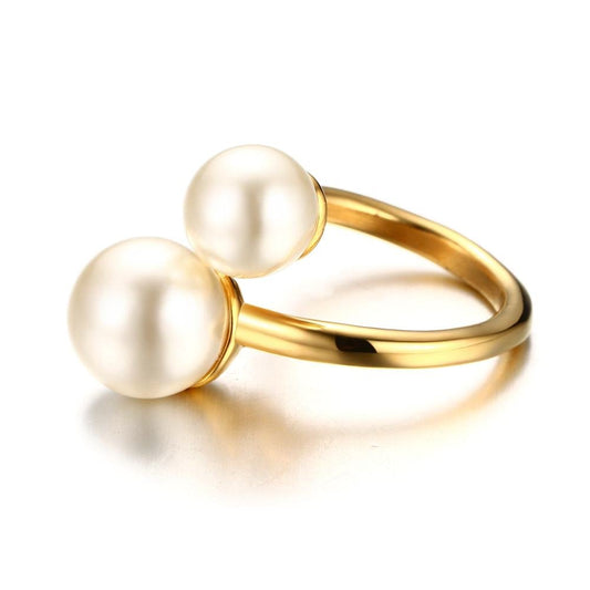 Pearl Ring fashion Double Simulated Wrap Gold Plated Stainless Steel Large Statement Ring for Women