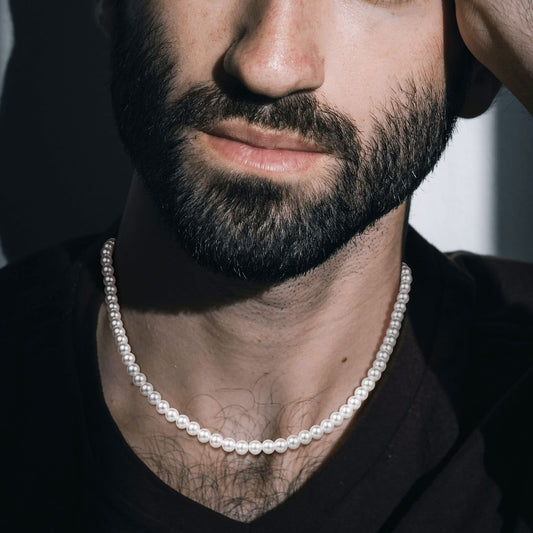 JSJOY Pearl Necklace for Men, Round Mens Pearl Necklace White Pearl Necklaces for Women, 4mm 6mm 8mm Pearl Choker Necklace 16",18",20",22",24" Gifts for Men Boys Husband Son