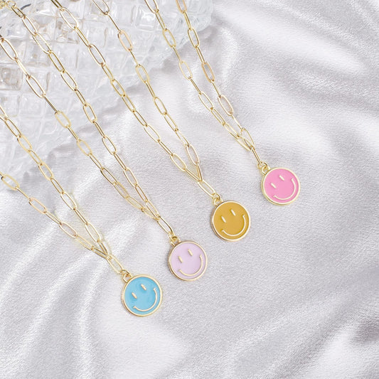 JSJOY Smiley Face Necklace 14K Gold Plated Paperclip Necklace Preppy Jewelry Y2K Trendy Necklace for Women Teen Girls