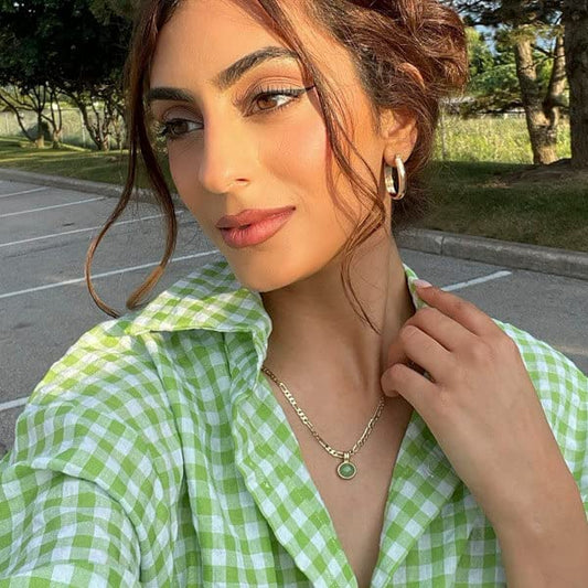 JSJOY Women's Green Stone Necklace,Gifts for Mom Charm 18k Gold Plated Stainless Steel Snake Chain Jewelry Bling Drop Pendant Choker Necklaces for Girls