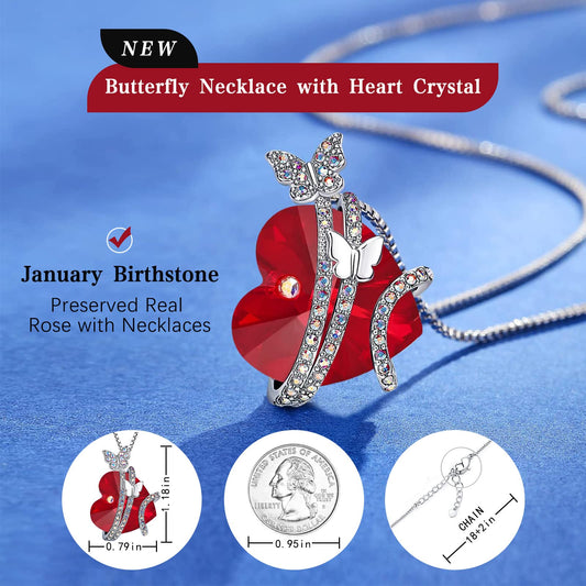 JSJOY Butterfly Love Heart Pendant Necklaces , Valentines Day Gifts for Her, Mother's Day Birthday Anniversary Jewelry Gifts for Women Mom Wife Girlfrind with Birthstone Crystals
