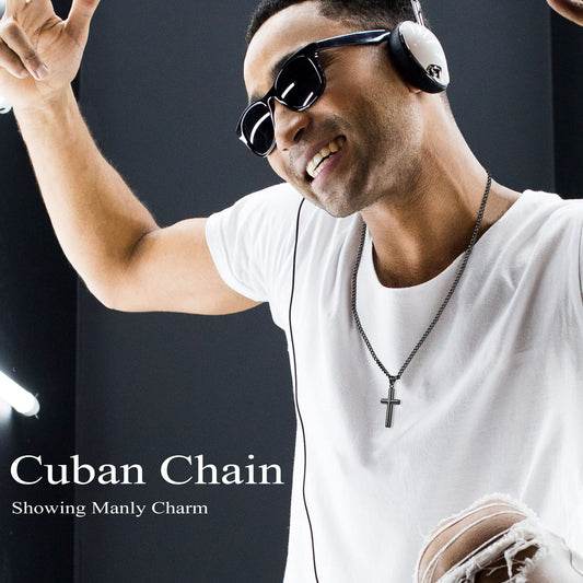 JSJOY Cross Necklace for Men Boys Black Silver Mens Cross Necklaces Stainless Steel Cross Pendant Cuban Chain Simple Cross Necaklce Unique Gifts Jewelry for Men