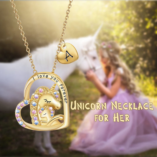 JSJOY Unicorn Gifts for Girls, Initial Necklaces for Women Girls 18K Gold/White Gold Plated Rainbow Unicorn Necklace for Teen Girls Heart Pendant Letter A-Z Unicorn Teen Girl Gifts Mom Daughter Gifts