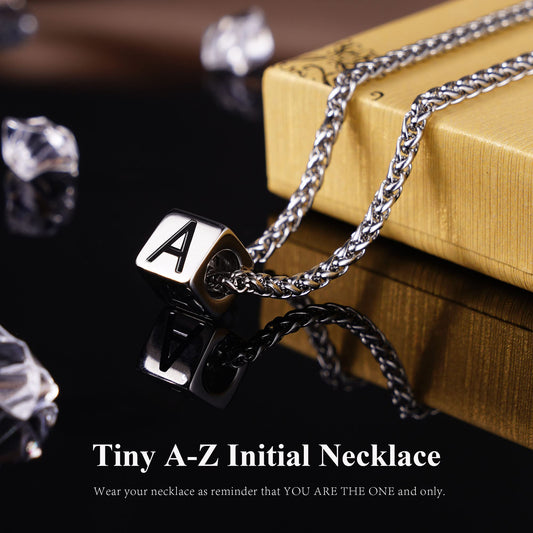 JSJOY Initial Necklaces for Men Silver Tiny Mens Letter Necklace Jewelry Gifts for Men A-Z Capital Letter Stainless Steel Franco Chain Necklace 18inch Graduation Gifts for Him 2023