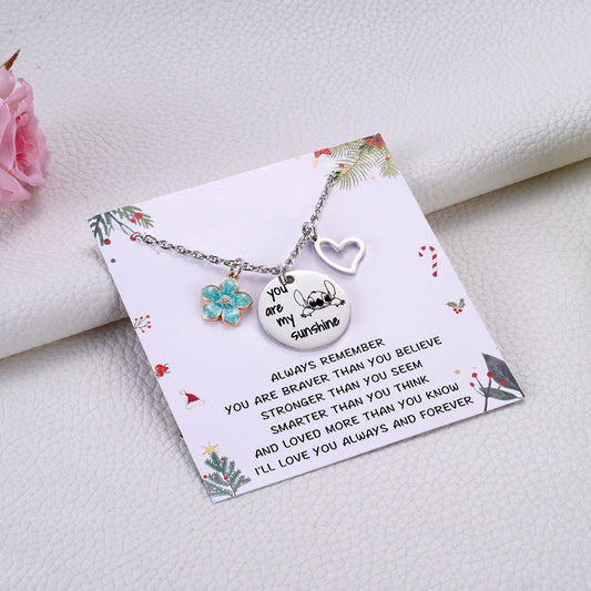 Metal pendantStitch Gift You are My Sunshine Necklace&Greeting Card Stitch Jewelry Stuff Birthday for Little Girls Niece Daughter Granddaughter