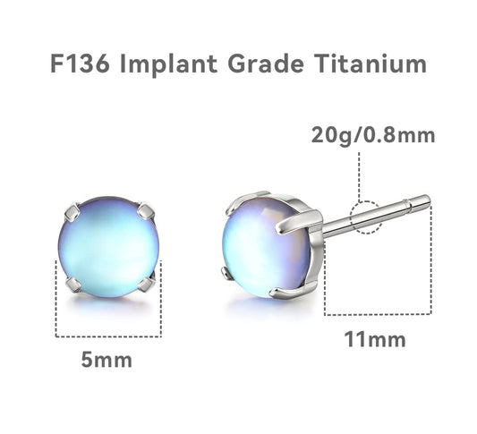 Opal/Moonstone Cat's Eye Blue Turquoise Stud Earrings Pure Titanium Hypoallergenic Earrings Stud Earrings Implant Grade Delicate Jewelry For Sensitive Ears
