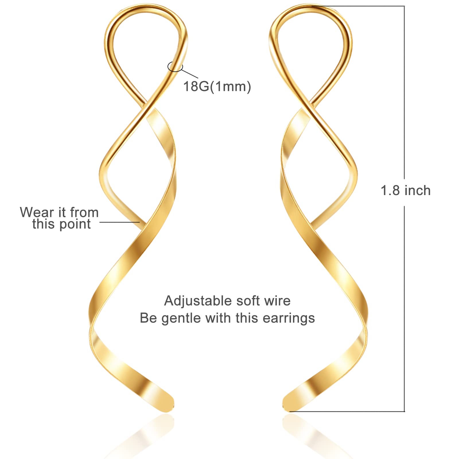 - 【Lightweight】: Each of the spiral earrings is polished to be smooth and safe to your ears. Be gentle with these earrings, it's made of soft wire, easy to bent.