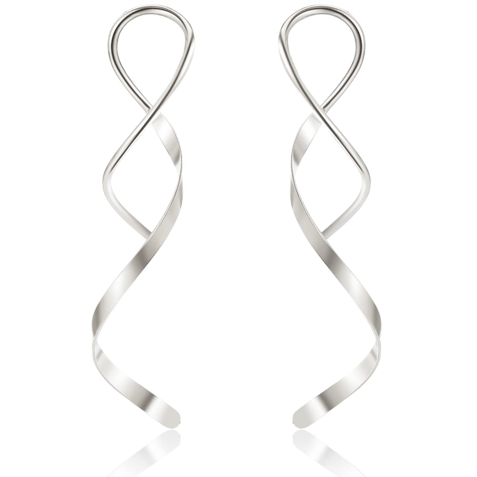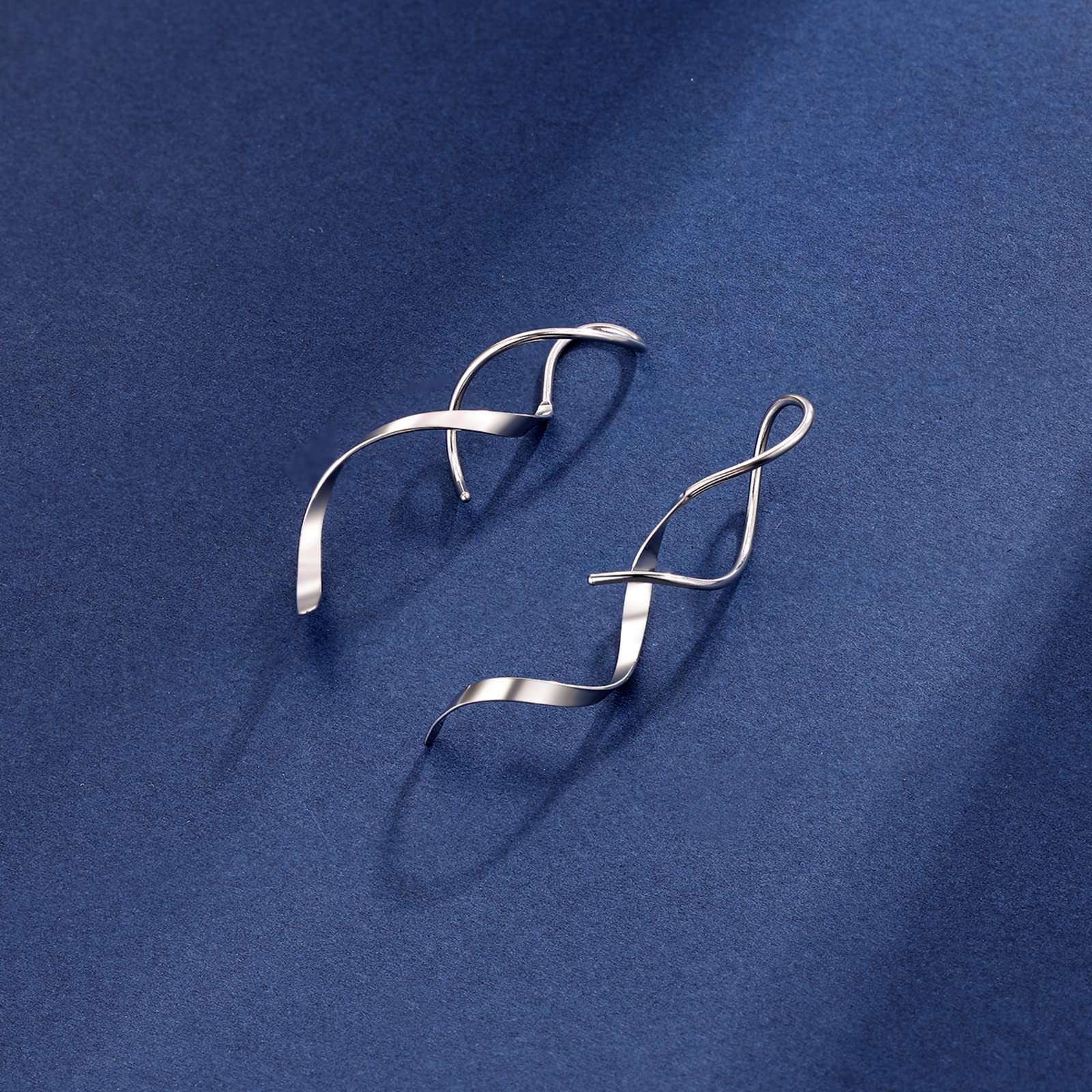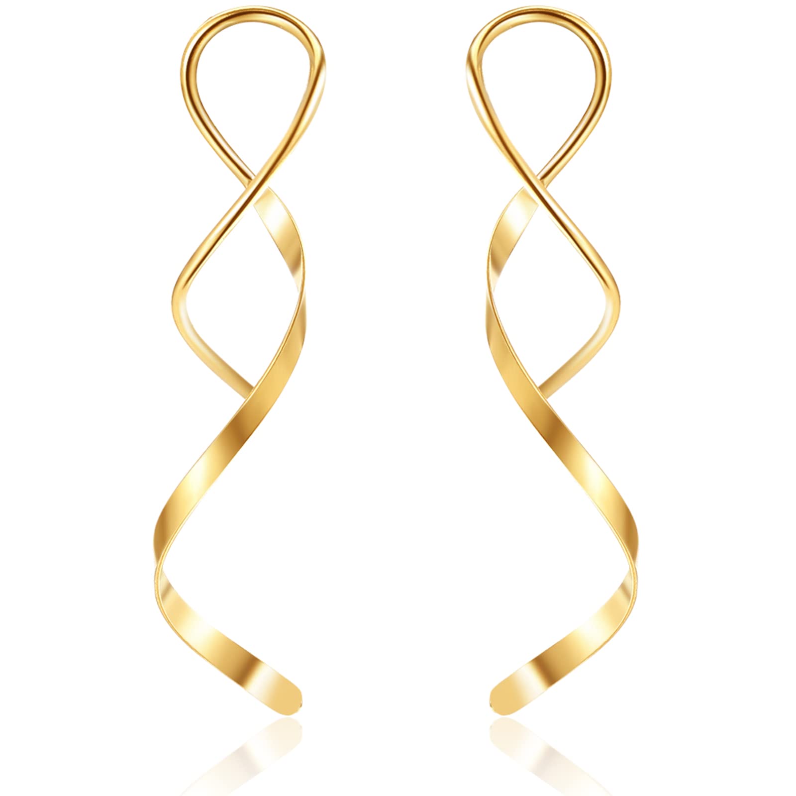 JSJOY Earrings for Women Spiral Threader Earrings Stainless steel Handmade Twisted Curved Pull Through Silver Gold Drop Dangle Earrings Jewelry for Women